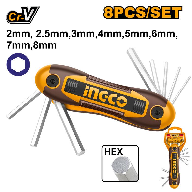 INGCO 8-Piece Precision Hex Key Set, 2mm-8mm, Durable Metal Blades for DIY & Professional Repair HHK14081